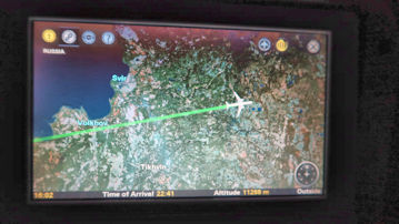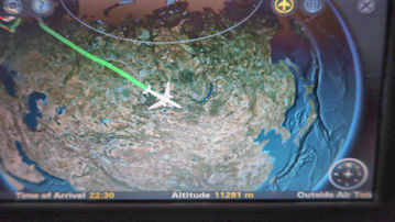 もしかして、ロシア上空を飛ぶのかな。 |